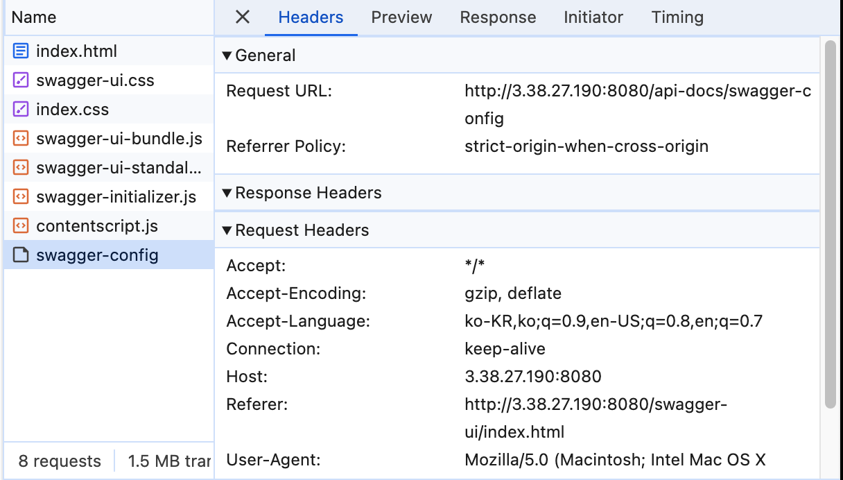 Swagger 페이지에 접근할 수 없었습니다. 그래서 브라우저에서 직접 http://[IP주소]/swagger-ui/index.html에 접속해 보니 api-docs/swagger-config에 대해서 500 에러가 발생하더라구요.