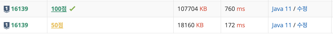 문제를 보고 간단히 구현해 풀었으나, 50점만 받았습니다..🥲
