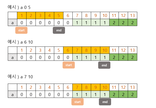 누적합 계산이 완료되면, 주어진 범위 내에 찾고자 하는 문자가 몇 개 포함되어 있는지를 end - (start-1) 연산을 통해 쉽게 구할 수 있습니다.