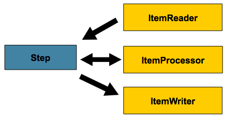- 각 Step 내부에서는 ItemReader, ItemProcessor, ItemWriter를 사용하는 chunk 방식 또는 Tasklet 하나를 가질 수 있습니다.