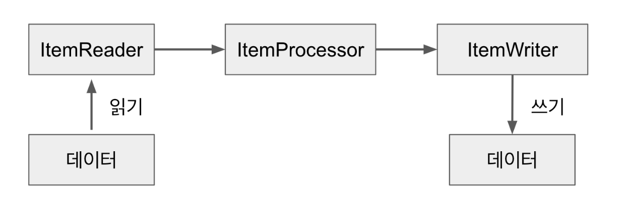 - 각 Chunk 처리는 Reader, Processor, Writer 세 단계로 구성된다.